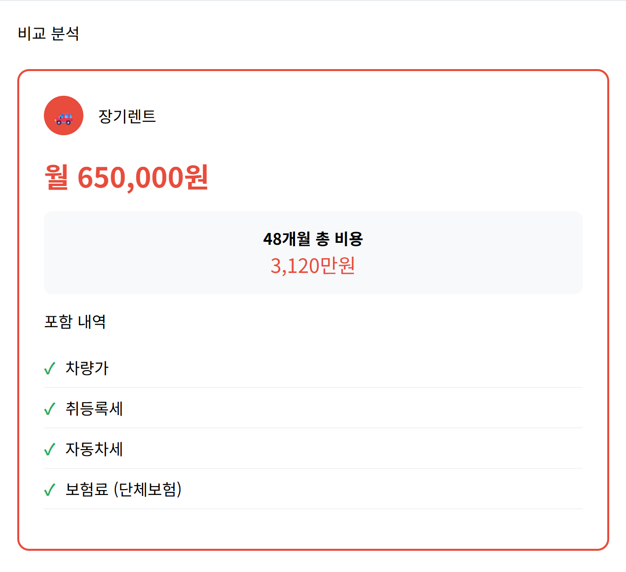 3.2. 견적 비교: 장기렌트 vs 리스1) 장기렌트 표준 견적